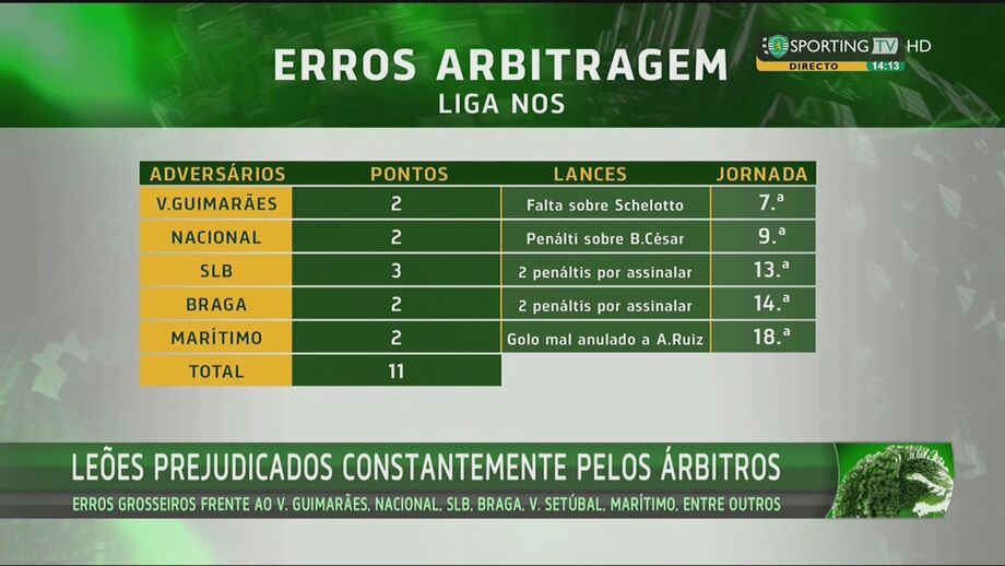 "O árbitro fez uma excelente arbitragem, esteve calmo, sereno, a intervir quando devia, mas o jogo fica marcado por aquele lance. Não nos escondemos atrás de nada, não disfarçamos que aqui e ali não estivemos tão bem como devíamos. Tem havido alguns erros que têm marcado profundamente a equipa do Sporting. Ontem, o Sporting teve uma prestação mais perto da que é o nosso desejo, de jogadores, treinadores, staff, presidente, da massa associativa. Invertemos duas vezes o resultado, marcámos o terceiro golo que, infelizmente, o auxiliar invalidou. Pareceu ser evidente um penálti que esse mesmo auxiliar não terá sinalizado com influência direta no resultado. Esses erros têm influência direta nos resultados. São factos indesmentíveis que não podemos esconder", afirmou.
