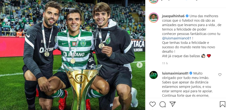 "Uma das melhores coisas que o futebol nos dá são as amizades que levamos para a vida, de termos a felicidade de poder conhecer pessoas fantásticas como tu, Luís Maximiano! Que tenhas toda a felicidade e sucesso do mundo neste teu novo desafio! Até já craque das balizas", escreveu o médio do Sporting.