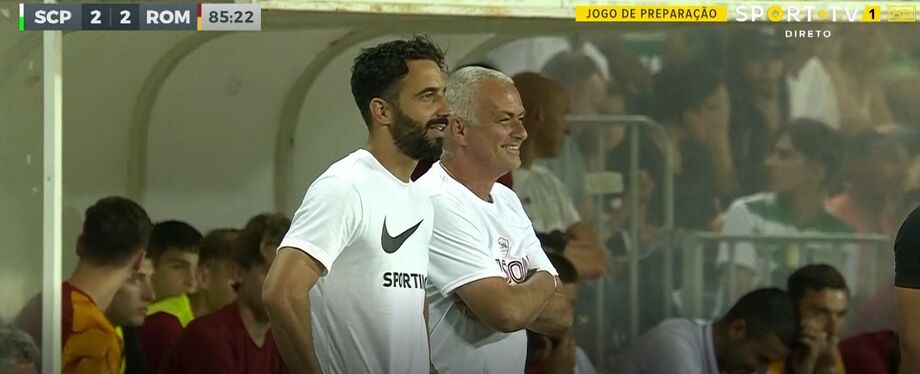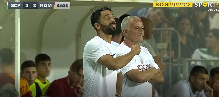Ora, Rúben Amorim estava ao lado e apercebeu-se da reação do treinador da Roma. Num ápice, gritou para dentro de campo, muito possivelmente para o goleador leonino, parecendo soltar um "está a dizer que jogas muito", em referência à expressão anterior de Mourinho.