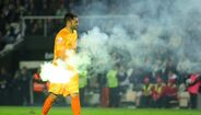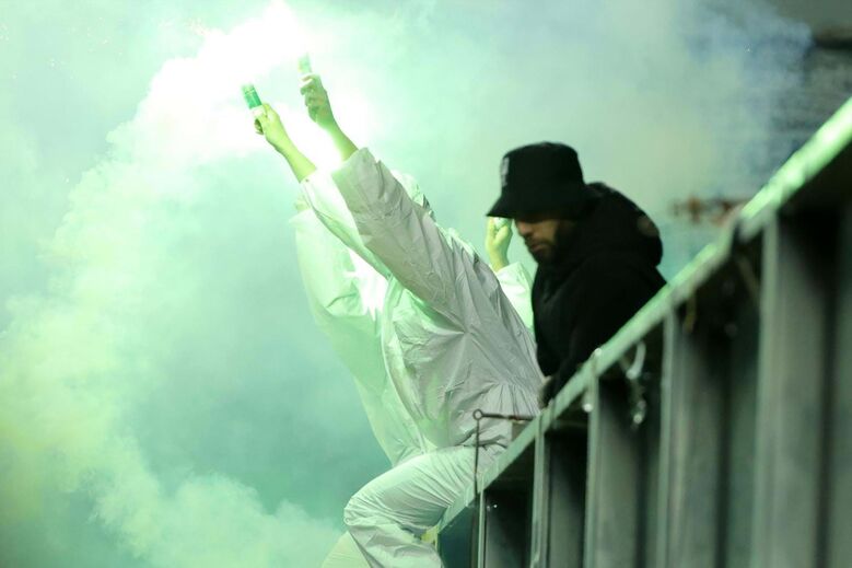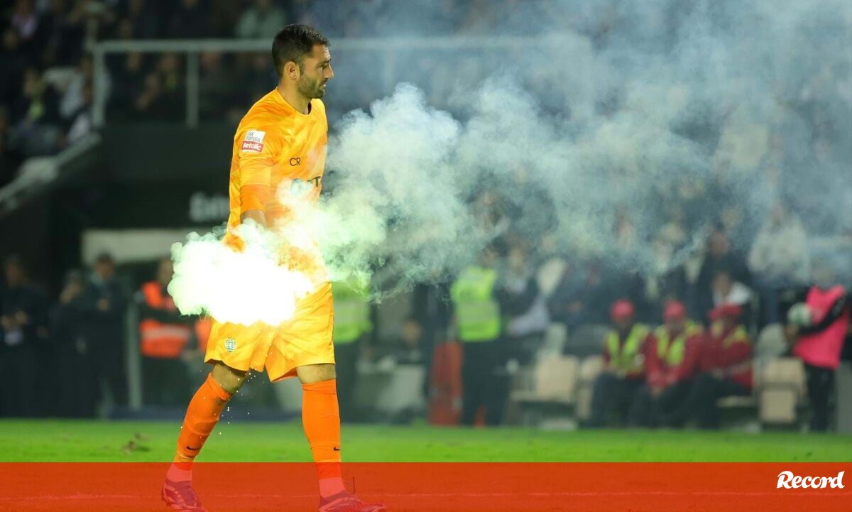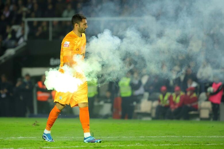 Petardos e tochas arremessados para o relvado em diversos momentos do jogo