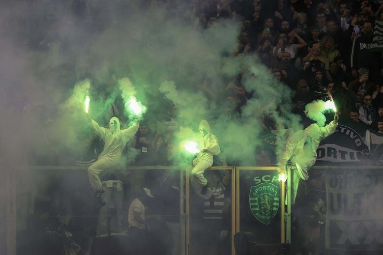 Adeptos identificados com adereços do clube leonino arremessaram petardos e tochas em diversos momentos da partida, com as multas para as referidas infrações a resultarem na soma de 25 574 euros.