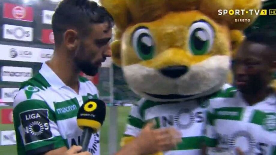 Bruno Fernandes foi o homem do jogo e foi o escolhido para falar aos microfones da SportTV. O médio deu o prémio de melhor em campo a Carlos Mané... com 'Jubas' a testemunhar tudo bem de perto.