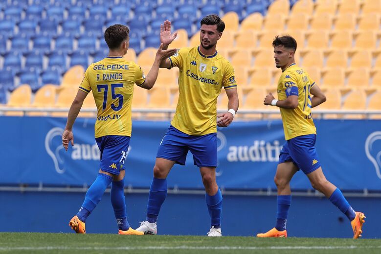 Contra 10, os canarinhos tomaram conta das operações e foram obrigando os encarnados a recuarem. Ainda assim, o empate só chegou já na 2ª parte, com Cauê Alves a concluir na pequena área.