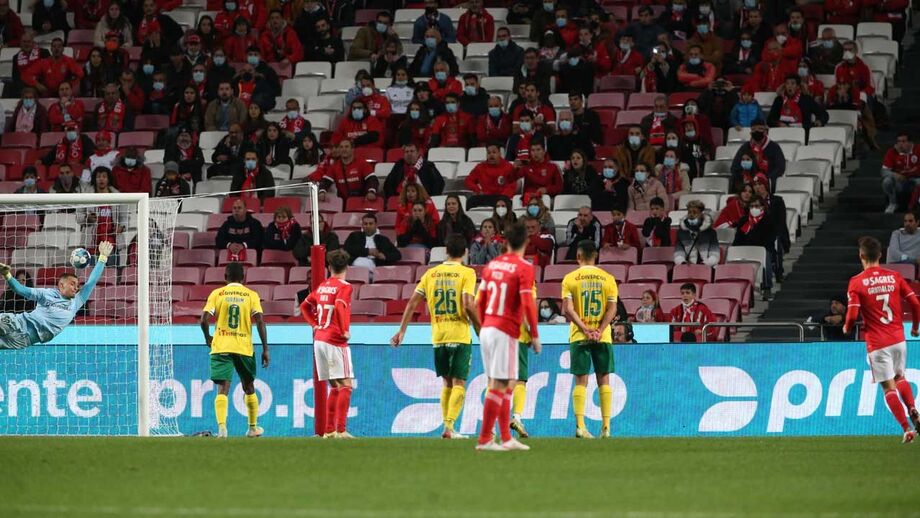 35' - Cruzamento perfeito de Delgado para Lucas Silva, mas Helton Leite foi mais rápido e afastou a bola. Grande intervenção do guarda-redes do Benfica.