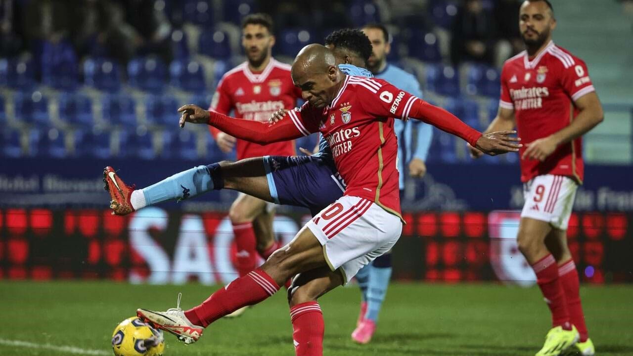 Uma vitória sem contestação mas mais sofrida do que seria de esperar permitiu ao Benfica cumprir a obrigação de vencer o Vizela. Os encarnados apresentaram mudanças no onze, a mais significativa das quais a inclusão de Carreras na esquerda da defesa, e foi com o espanhol em franca atividade pelo flanco que conseguiu desenhar o seu projeto de jogo ofensivo. O Benfica entrou no jogo sem bater à porta; tomou a iniciativa e entregou-se imediatamente à tarefa de administrar a bola e tomar conta do duelo, sem especulações, assumindo desde logo a intenção de montar o cenário para chegar o mais depressa possível ao golo – Rafa podia ter lançado a vitória aos 3 minutos, num lance em que surgiu isolado diante Ruberto. Em Vizela, o campeão ‘versatilizou’ a aproximação à baliza, com a já referida introdução de Carreras, em vez de Morato, no flanco esquerdo. Com o espanhol ativo pela esquerda, a equipa dividiu melhor os corredores ofensivos, abriu horizontes a quem concebe e marca os ritmos do jogo e essa alteração teve impacto em toda a produção coletiva.