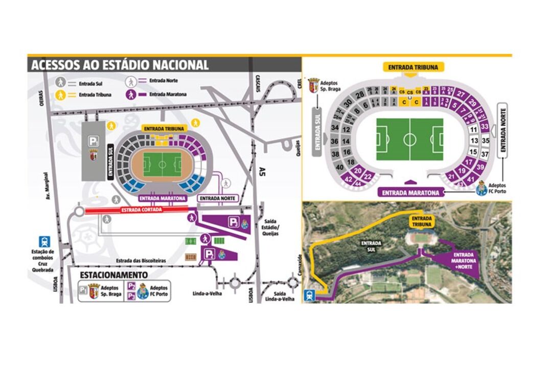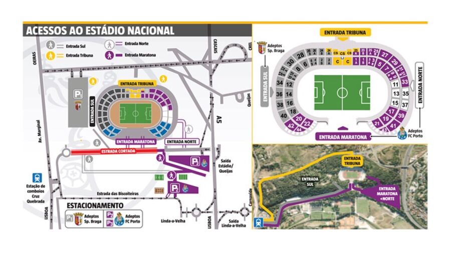 Depois de deixarem os parques de estacionamento, os adeptos serão colocados em zonas exclusivas do estádio. Os afetos ao Sp. Braga preencherão o topo sul; os do FC Porto, previsivelmente em maior número, terão à disposição duas maneiras de chegar ao seu lugar, uma pela entrada norte, a outra pela entrada da maratona, a partir da qual chegarão a quatro sectores do topo sul (20, 22, 42 e 44), onde ficarão lado a lado com adeptos rivais (ver infografia em baixo).