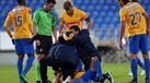 25'. Entrada da maca, Kléber contorce-se no chão. Queixa-se da face.