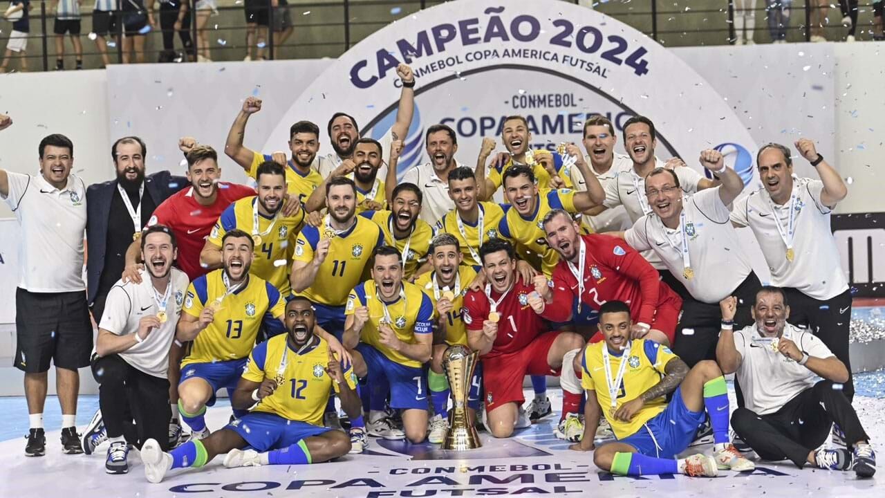 O Brasil conquistou este sábado a Copa América de futsal ao bater, na final, a Argentina por 2-0. A seleção canarinha contou, ao longo do torneio, com algumas caras conhecidas da modalidade em Portugal, como Diego Nunes e Arthur, que atualmente atuam no Benfica, assim como Diego Roncaglio, que já jogou nas águias, e Rocha, antigo pivô do Sporting que também está ao serviço dos encarnados esta temporada. O guarda-redes Guitta, que defendeu os leões entre 2018 e 2023, esteve igualmente na equipa.