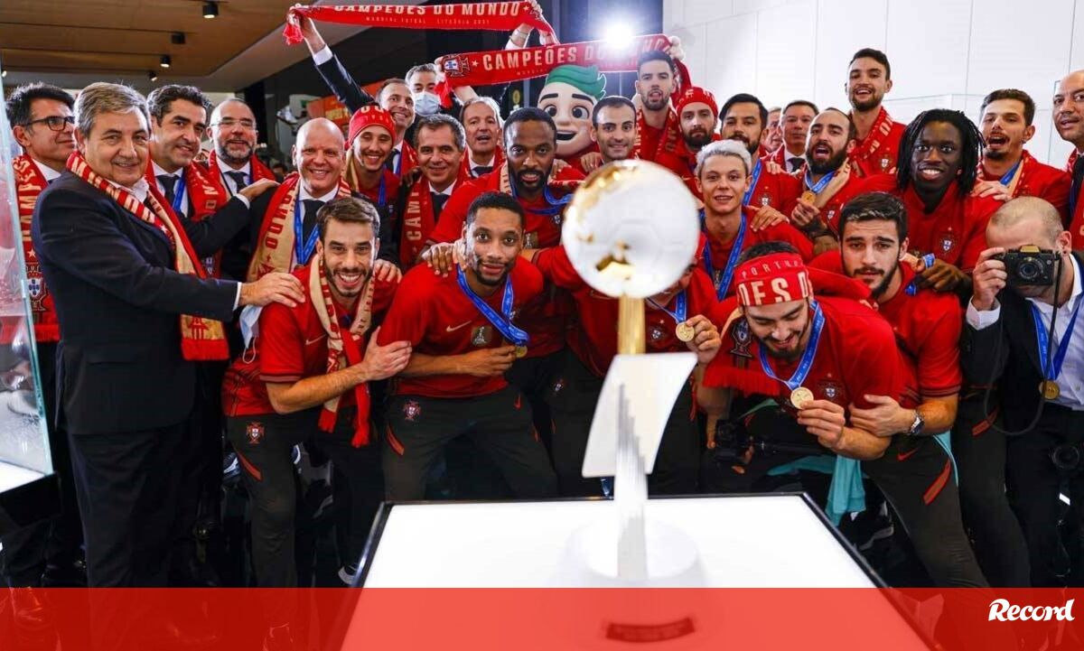 Ricardinho foi o primeiro a sair do avião, com a taça na mão, seguido pelo treinador Jorge Braz a seguir. A equipa posou na escada do avião para uma fotografia e foi aplaudida pelos funcionários do aeroporto.