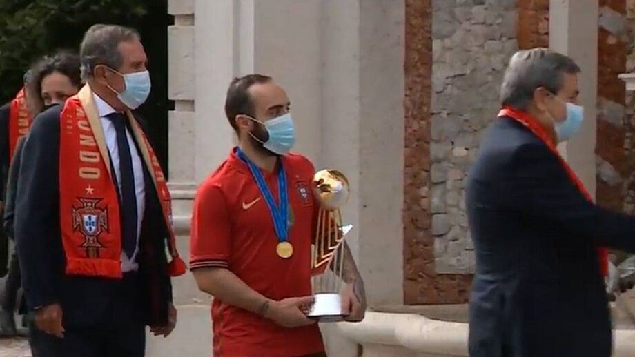 Ricardinho: "Não tenho o dom da palavra, mas hoje mais do que nunca vou ser o porta-voz deste campeões da Europa e do Mundo. É com enorme orgulho que estamos aqui depois de 2018 e hoje estarmos a ser condecorados outra vez depois de conquistar o Mundo. Permita-me, Sr. Presidente da República, que estas palavras sejam para os meus companheiros: obrigado por tudo o que dão ao nosso país, é um orgulho ser vosso porta-voz, capitão, e como todos puderam comprovar, aqui a liderança comparte-se por todos. Sintam-se orgulhosamente portugueses porque conquistaram o Mundo. Vão ser um exemplo para milhares de crianças e já fomos apelidados de geniais. Permitam-me dizer que para mim, escrevemos o nome de Portugal com letras douradas. Vocês são históricos. Obrigado".