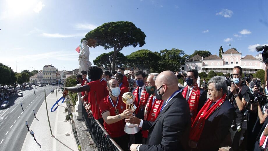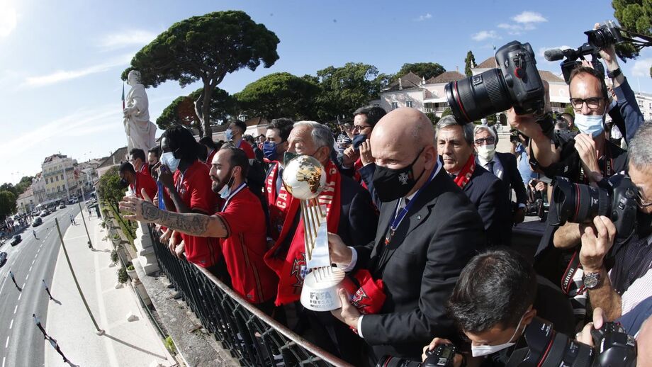 O autocarro acaba de dar entrada no Palácio de Belém. Na cerimónia, onde Marcelo Rebelo de Sousa vai atribuir à equipa as Insígnias Comendador da Ordem Infante D. Henrique, vão falar Fernando Gomes, presidente da federação, Presidente da República e Ricardinho.