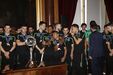 17h27 - Campeões europeus de futsal já estão no Salão nobre.