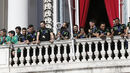 15h53 - Os jogadores saem do autocarro a dançar e exibem as medalhas para as câmaras de televisão; o ambiente é de euforia!