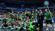 See the moment @Sporting_CP became the first club to lift the new #UCLFutsal trophy
