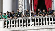 17h19 - Autocarro chega agora à Câmara Municipal de Lisboa. O capitão João Matos é o primeiro a sair. Os adeptos presentes gritam: "Campeões, campeões".