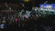 19h37 - Presidente, jogadores e treinadores abraçados e muito entusiasmo dos adeptos. Fisioterapeutas e médicos também são chamados ao palco.