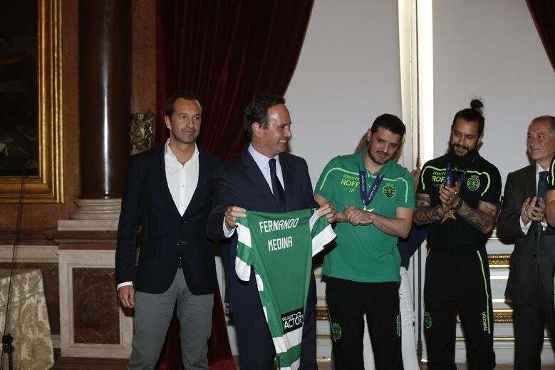 17h40 - É entregue uma camisola do Sporting autografada a Fernando Medina.