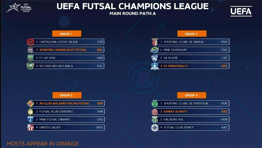 O campeão nacional vai jogar no pavilhão da equipa que venceu por 2-1 na primeira das duas finais vencidas na 'Champions', em 2019, em Almaty (o outro título foi conquistado em 2021), integrada no Grupo 4, no qual os três primeiros classificados se apuram para a Ronda de Elite.