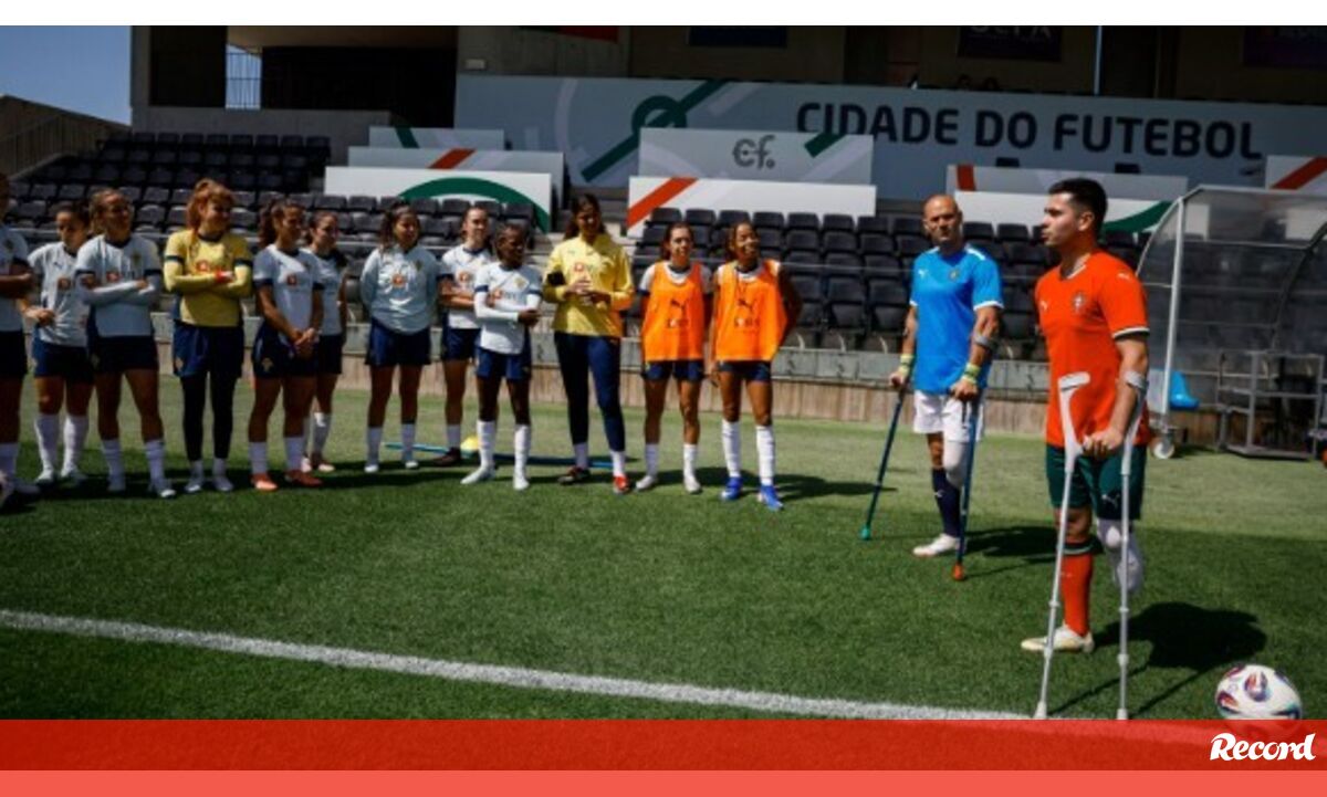 À margem do treino da Seleção Nacional de futebol feminino, estiveram na bancada dois jogadores de futebol para amputados, Miguel Barbosa e Milton Martins, que foram promover o futebol feminino para amputadas.