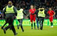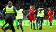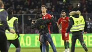 Ora, tudo aconteceu aos 68 minutos, quando Cristiano Ronaldo foi substituído por João Moutinho. O referido quarto adepto desatou a sprintar pelo relvado fora enquanto o craque português, sem se aperceber do que se estava a passar, se dirigia calmamente para o banco de suplentes. Fernando Santos chegou-se à frente a pedir calma, mas quase foi apanhado no meio da placagem feita por um dos ‘stewards’ ao adepto em causa. O selecionador levou as mãos ao alto e esperou parado que a confusão passasse, com esse fã a acabar por ser detido, tal como aconteceu com os três primeiros. Já no final da partida, outros tentaram a sorte, mas sem conseguirem chegar aos jogadores portugueses.