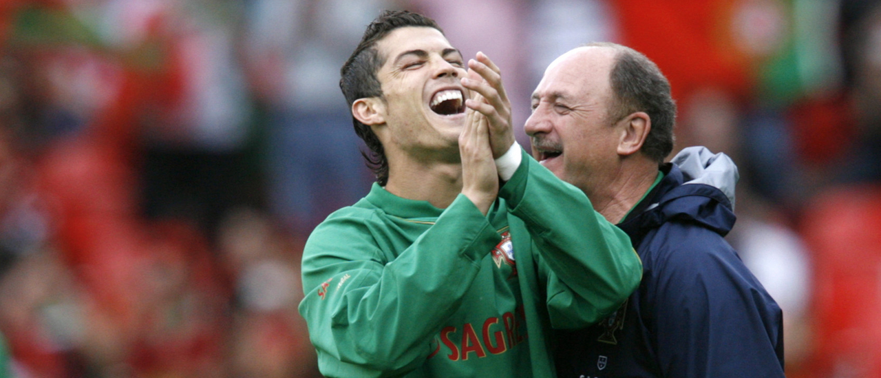 Há um treinador brasileiro que foi especial na carreira de Cristiano Ronaldo. Trata-se de Luiz Felipe Scolari, o responsável pela estreia de CR7 na Seleção Nacional. O jogador foi convocado pela primeira vez a 20 de agosto de 2003 num particular frente ao Cazaquistão, realizado em Chaves, poucos dias após a mudança do Sporting para o Man. United. Um mês de loucos para Cristiano Ronaldo.