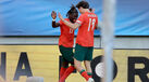 Diogo Nascimento cumpriu os 90 minutos na goleada de Portugal à Geórgia e, no final, deitou um olho nos 'quartos' do Europeu sub-21.