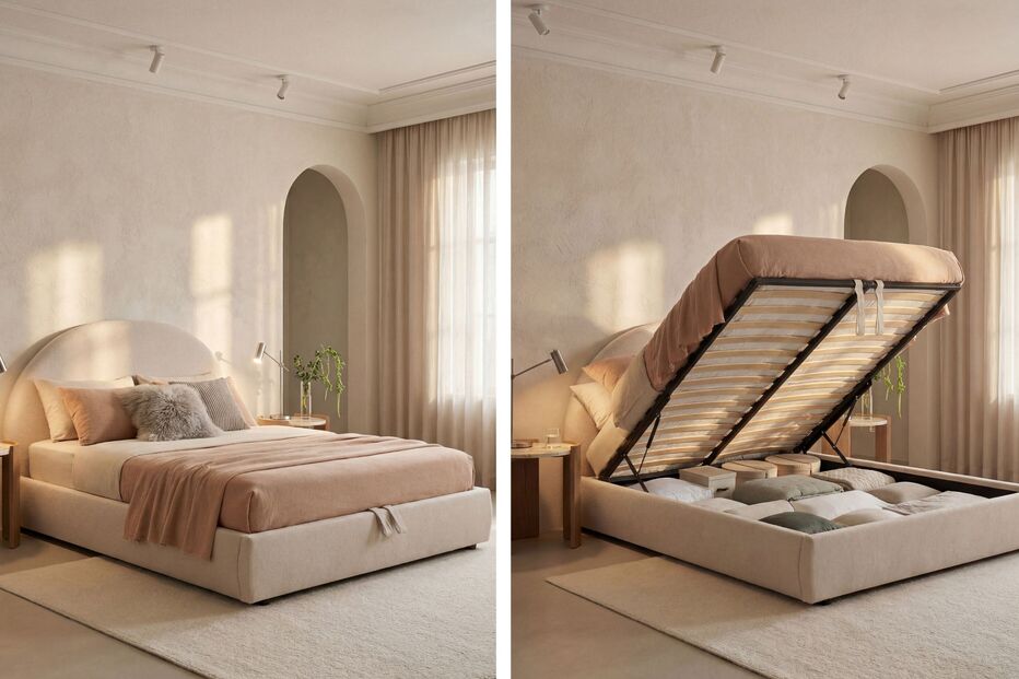 VER PREÇOQuando o assunto é aproveitar cada centímetro do quarto, a cama Selene com sommier rebatível e capa removível para colchão 160x200 cm em bouclé bege é praticamente um truque de magia. O espaço de arrumação escondido debaixo do colchão permite guardar roupa de cama, mantas ou roupa fora de estação, libertando espaço precioso no roupeiro e mantendo o quarto visualmente leve.