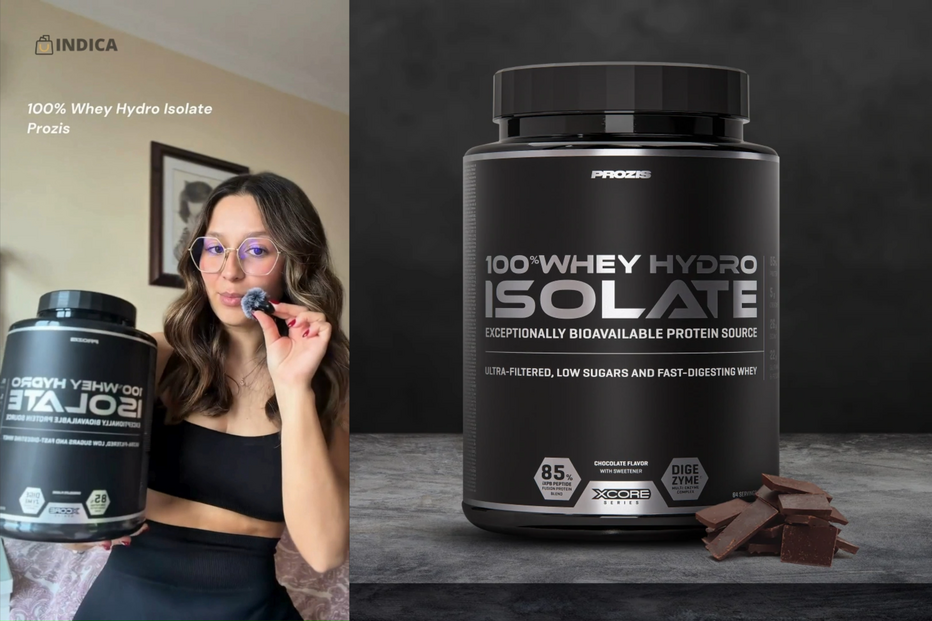 A minha principal escolha é a 100% Whey Hydro Isolate com sabor a chocolate. É rápida a absorver, sabe muito bem e é perfeita para o pós-treino. Assim, sei que estou a apostar numa fonte de proteína isolada e parcialmente hidrolisada, perfeita para apoiar a recuperação e o crescimento muscular.