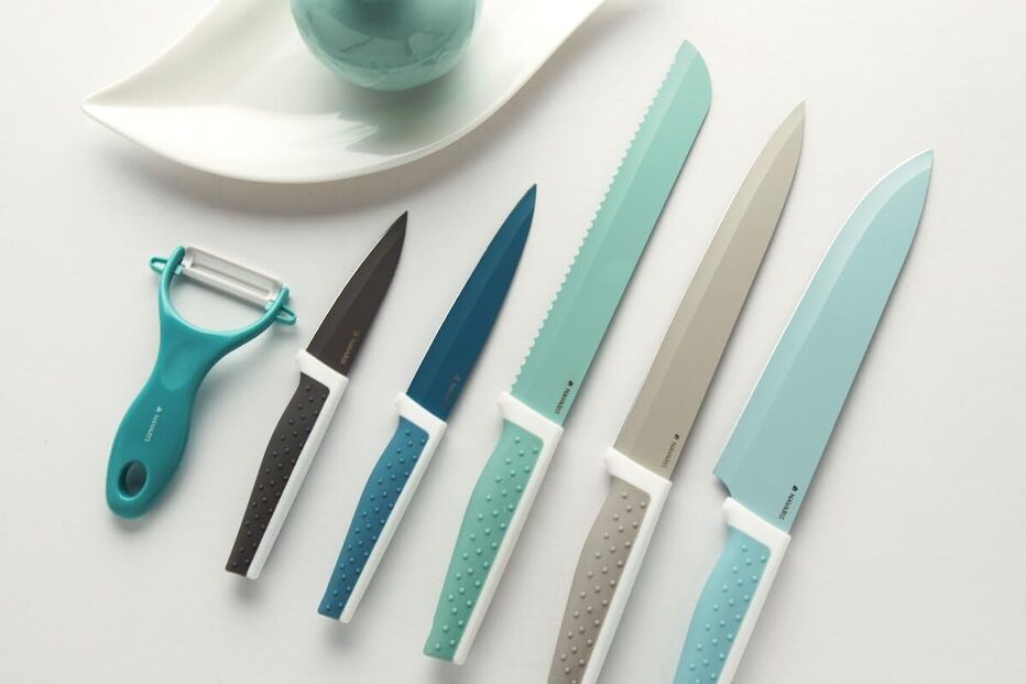 Este é um dos best-sellers da marca: o conjunto de facas da Navaris. Com cinco lâminas de aço inoxidável em tamanhos variados e um descascador com lâmina de cerâmica, este kit é perfeito para cortar desde carne, legumes frutas e pão. O cabo ergonómico em borracha proporciona conforto na utilização e, apesar de não serem indicadas para a máquina de lavar louça, a manutenção é simples e rápida. O Corte perfeito sempre à mão.