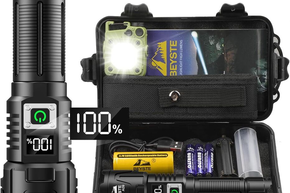 A iluminação portátil é um elemento essencial neste kit, seja para ver por onde anda, ou para assinalar a sua presença a terceiros. Este modelo de lanterna tática LED que encontrámos é o ideal e explicamos porquê: além de ser ultra potente e funcionar com uma bateria recarregável via USB, ou ligada a um telemóvel, também pode ser alimentada a pilhas. Traz ainda um iluminador extra para que fique com dois pontos de luz.