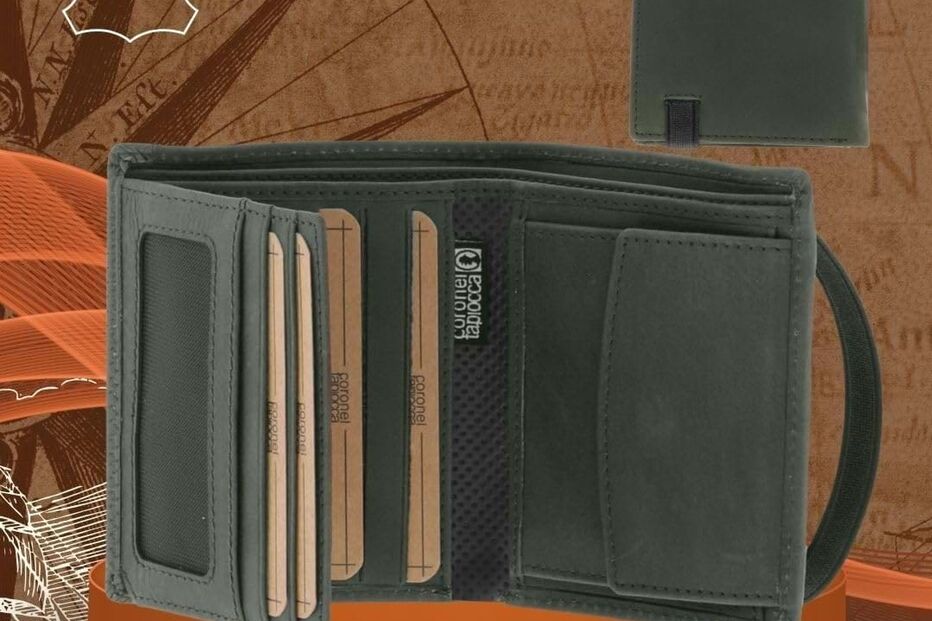 Com um estilo mais jovem e descontraído, este modelo de carteira em pele da Coronel Tapioca mede 10,5 x 8,7 cm, tem 6 ranhuras para cartões, uma divisão para bolso para moedas com lapela e fecho de clique, 2 compartimentos separados para notas desdobradas, 2 compartimentos internos para documentos com visibilidade e 2 bolsos interiores. Fecha ainda um prático elástico e está disponível em três cores.