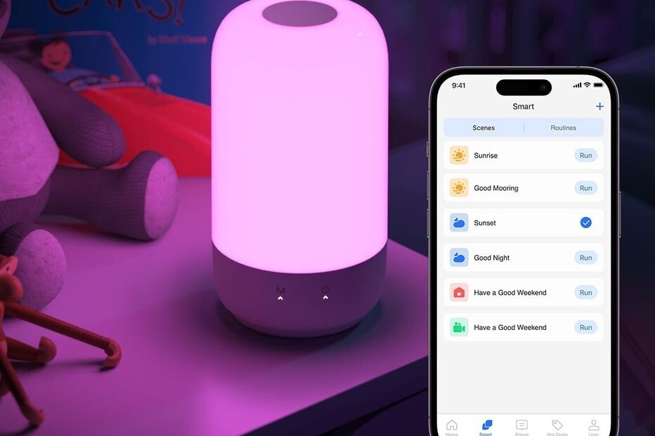 Com a app Meross, configura horários, temporizadores ou cria rotinas para acender e apagar automaticamente. Liga o HomePod, Apple TV ou iPad como hub e controla tudo de qualquer lugar, seja para acordar suavemente com luz quente ou garantir que a luz do quarto das crianças se apaga na hora certa.