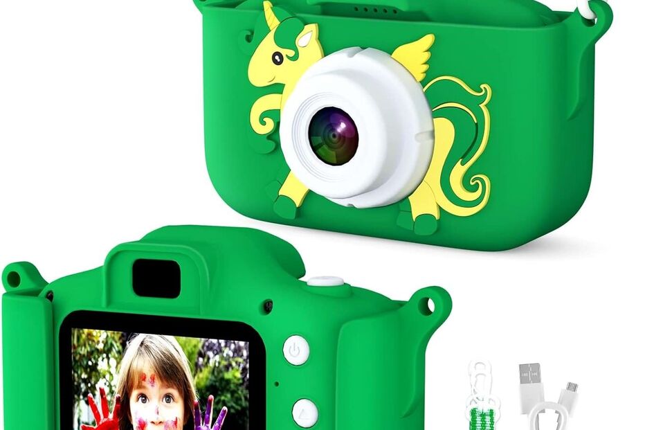 Este divertido modelo de câmara fotográfica digital para crianças vem equipada com um sensor de 12MP e resolução FHD. Vem protegida com uma capa de silicone e é capaz de registar os melhores momentos em família como algumas máquinas para os mais crescidos. Vai ser fácil criar nos mais novos o 'bichinho' da fotografia. Vem com uma correia para prender ao pescoço, cabo de carregamento da bateria e um cartão de memória de 32GB.