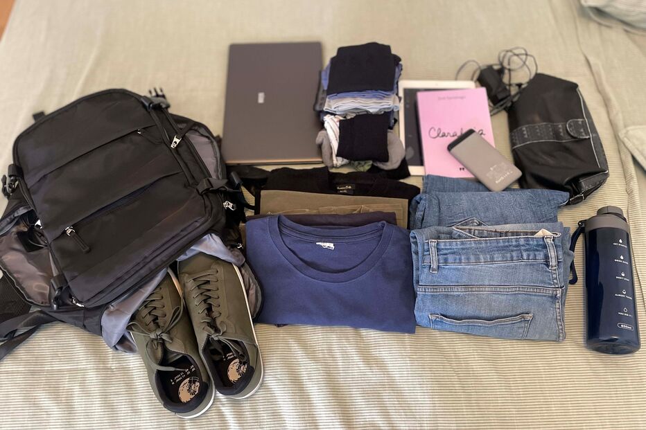 Um par de sapatos, duas calças de ganga, quatro t-shirts, duas camisolas quentes, roupa interior para quatro dias, um livro, um tablet, um computador portátil e carregadores, uma powerbank, um necessaire com produtos de higiene, uma garrafa de água de 850ml... quanto a nós bagagem suficiente para uma escapadinha de 3/4 dias, sobrando ainda vários compartimentos mais pequenos onde é possível colocar pequenos objetos como a carteira, chaves, carregadores, etc... acreditamos que os experts em fazer malas consigam potenciar ainda mais as valências deste artigo.