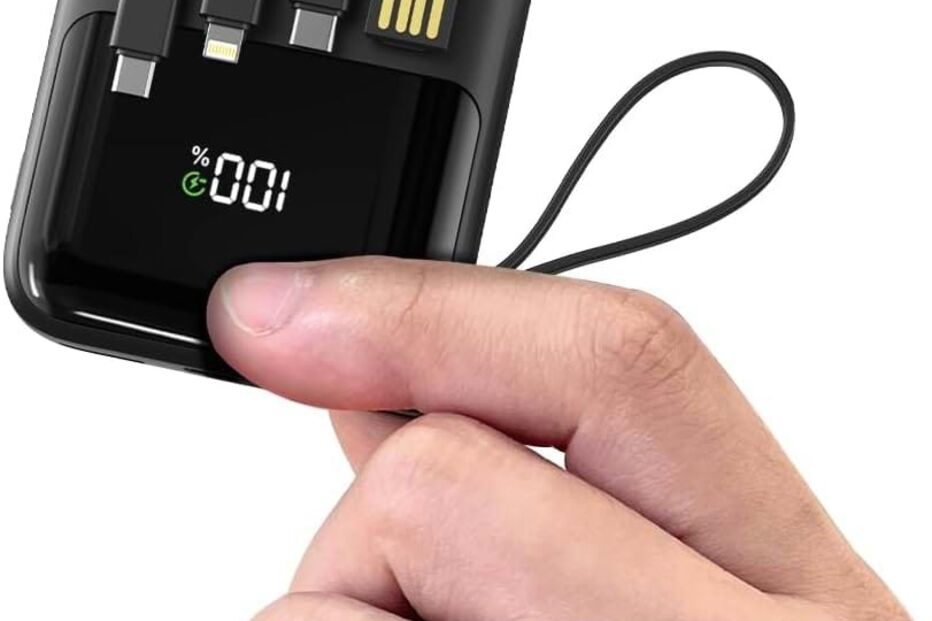 Pequena no tamanho, mas grande na capacidade e na forma prática como resolve o problema da falta de bateria nos nossos dispositivos eletrónicos. Esta mini powerbank tem as saídas adequadas aos carregadores mais populares (Lightning para iPhone, USB-C, USB-A e mini-USB, contando ainda com saídas adicionais onde pode ligar os cabos convencionais e carregar até 6 dispositivos em simultâneo. Tem 15000 mAh de capacidade e um visor LCD que indica o nível de bateria disponível. Está com 85% de desconto e custa menos de 20€! Um achado!