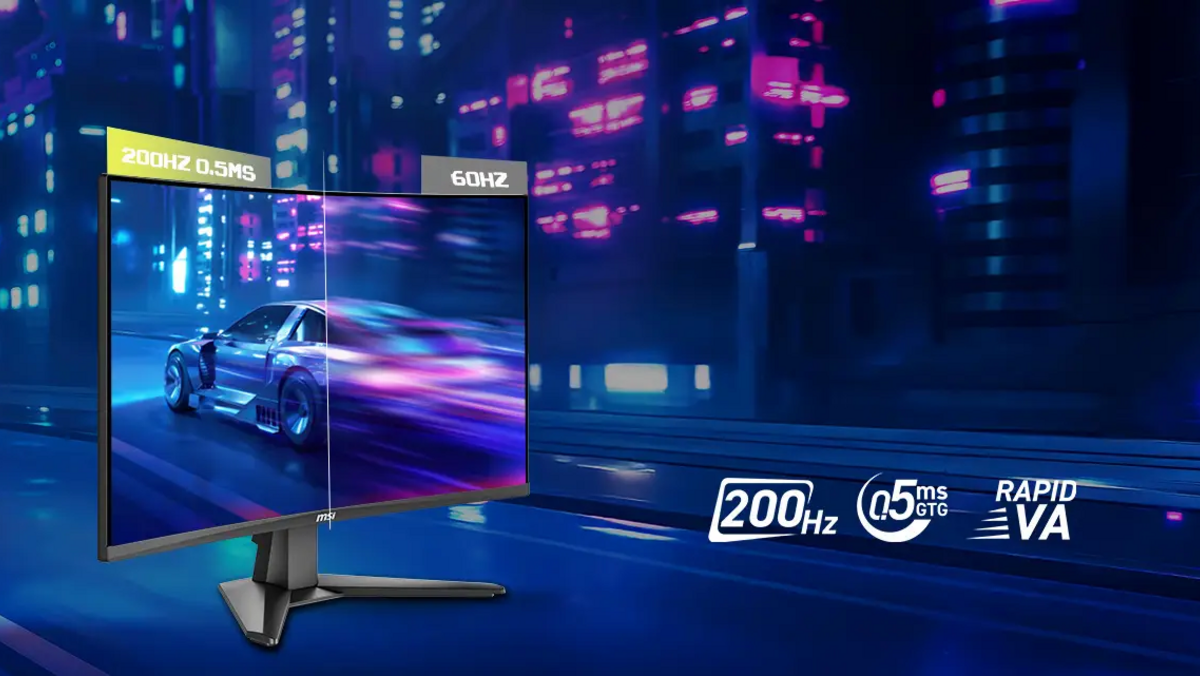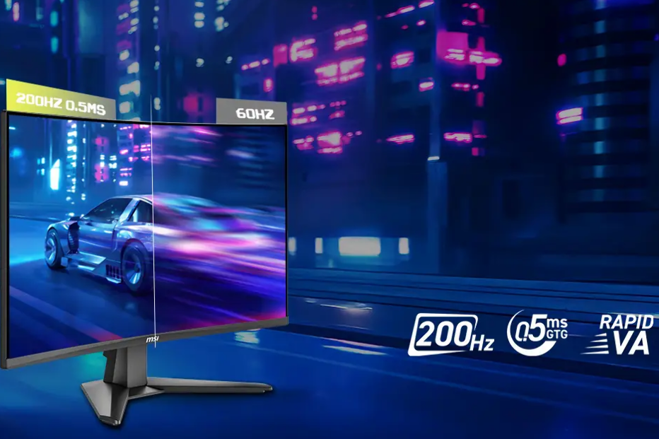 As 27 polegadas e curvatura 1500R são capazes de entregar um contraste típico de 3000:1 e uma profundidade visual envolvente. A resolução Full HD (1920×1080) combina com uma taxa de atualização impressionante de 200 Hz e tempo de resposta de apenas 0,5 ms (GtG), garantindo animações muito fluídas e sem atrasos. O monitor ainda suporta Adaptive-Sync, minimizando o tearing em placas gráficas compatíveis, e tem cobertura de cor de 98 % sRGB e 76 % DCI-P3, o que o torna versátil para gaming e consumo multimédia.