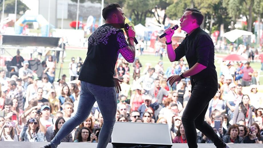 Slide, Bubble Football, toques na bola e cantar. A banda portuguesa animou o megaevento