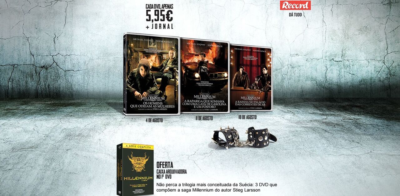 Não perca a trilogia mais conceituada da Suécia: 3 DVD que compõem a saga Millennium do autor Stieg Larsson. A partir de 4 de agosto, às 5.as feiras com o Record.