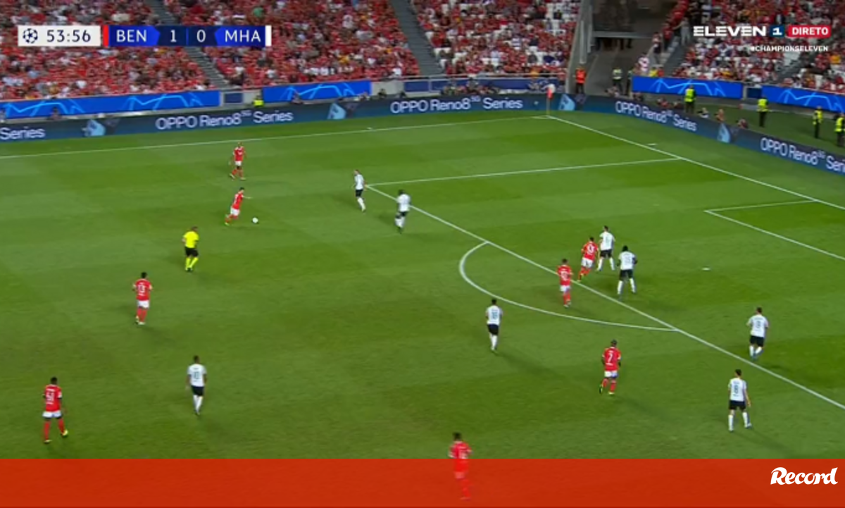 Depois de ter assistido para Rafa no primeiro golo, cinco minutos antes, Grimaldo fez ele mesmo um tento diante do Maccabi Haifa, num momento que certamente entrará na lista de melhores golos da Champions. UI! QUE GOLO DE GRIMALDO Mais no ângulo não sei se dava@ChampionsLeague | @SLBenfica 2 x 0 @mhfootballclub#ChampionsELEVEN pic.twitter.com/8D28kXuPzY— ELEVEN Portugal (@ElevenSports_PT) September 6, 2022