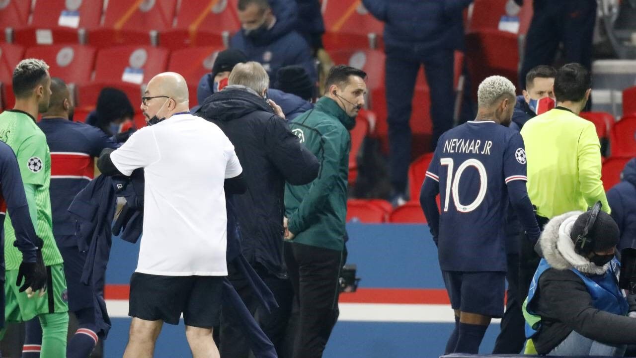 Após vários minutos, o 'staff' da equipa turca e os jogadores, seguidos pelos do PSG, decidiram abandonar o relvado, numa altura em que o jogo estava empatado 0-0 e o presidente do clube turco, Göksel Gümüsdag, disse que os jogadores só voltariam ao terreno de jogo se Coltescu não voltasse.