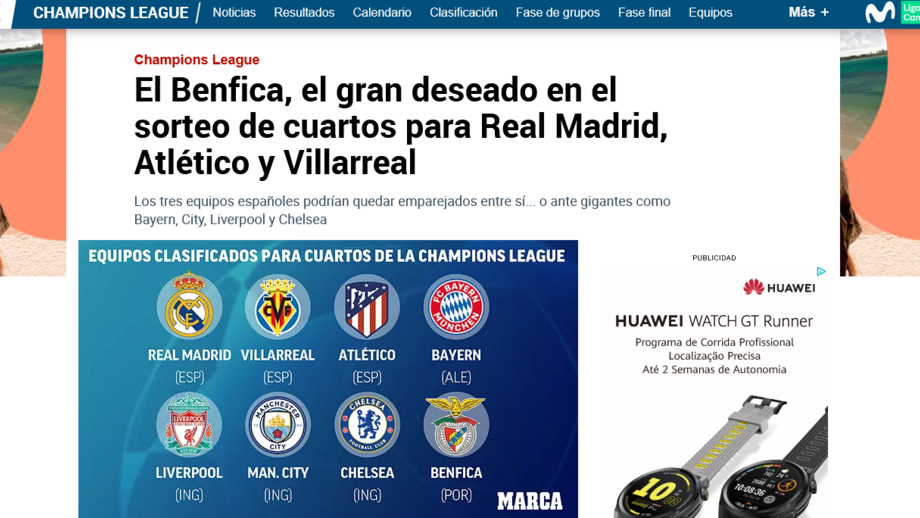 Contudo, a forma como finalizam o texto é clara: "O campeão Chelsea de Tuchel não está a brilhar, mas é sempre um osso... tal como o Bayern. Lewandowski não faz prisioneiros. O Benfica de Darwin Núñez é a surpresa. Um bombom para Madrid, Atleti e Villarreal."