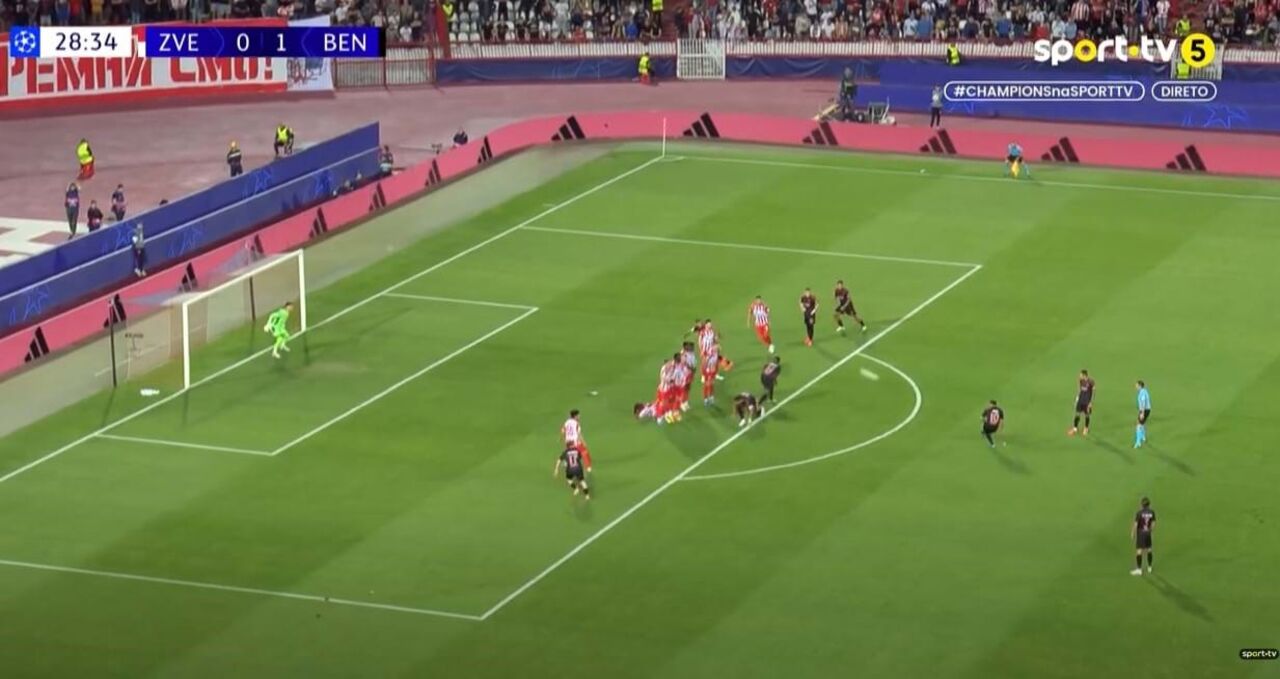 Aos 29' do Estrela Vermelha-Benfica, Kökçü fez o 2-0 para as águias de livre direto, em zona frontal, sem hipóteses para o guarda-redes dos sérvios. Veja o lance em baixo: