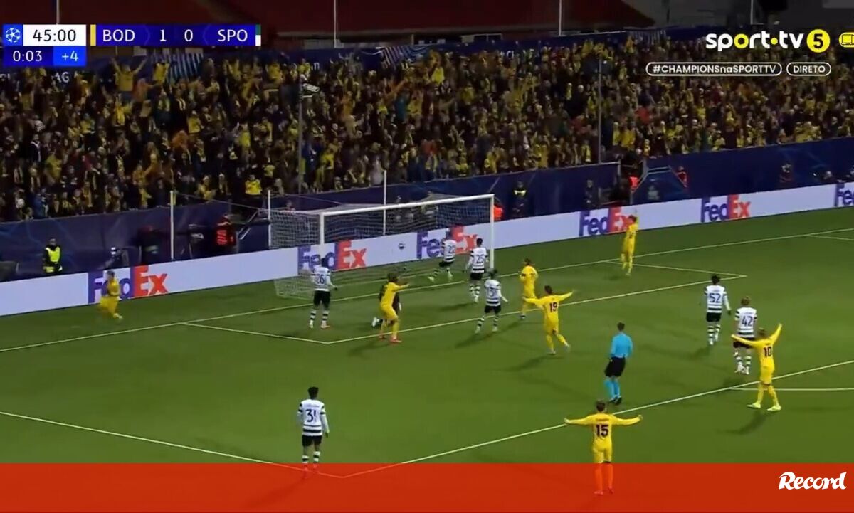 O Bodø/Glimt ampliou vantagem diante do Sporting ainda na primeira metade, com Ole Didrik Blomberg a fazer o 2-0 aos 45'+1.