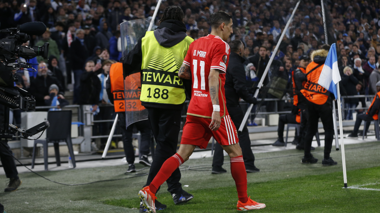 Di María teve de ser protegido por seguranças, sempre que batia um pontapé de canto, na segunda parte. Alguns dos elementos que se encontravam junto às quatro linhas erguiam uma rede entre o extremo argentino e as bancadas, enquanto outros pegavam em escudos, para que o argentino não fosse atingido pelos objetos que eram lançados por adeptos do conjunto francês.