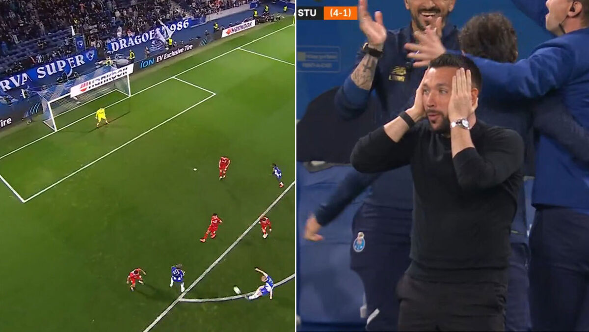 Aos 72' do FC Porto-Estugarda, Victor Froholdt fez o 2-0 para os dragões neste duelo da 2.ª mão dos oitavos de final da Liga Europa. Numa jogada de insistência, o médio dinamarquês ficou com a bola mas acabou por perdê-la à entrada da área alemã. No entanto, nunca desistiu, recuperou-a num ápice e, mesmo em desequilíbrio, conseguiu rematar de fora da área, de pé esquerdo, sem hipótese para o guarda-redes dos germânicos. Francesco Farioli levou as mãos à cara, num sinal de incredulidade perante a façanha do seu pupilo. Veja o lance em baixo.
