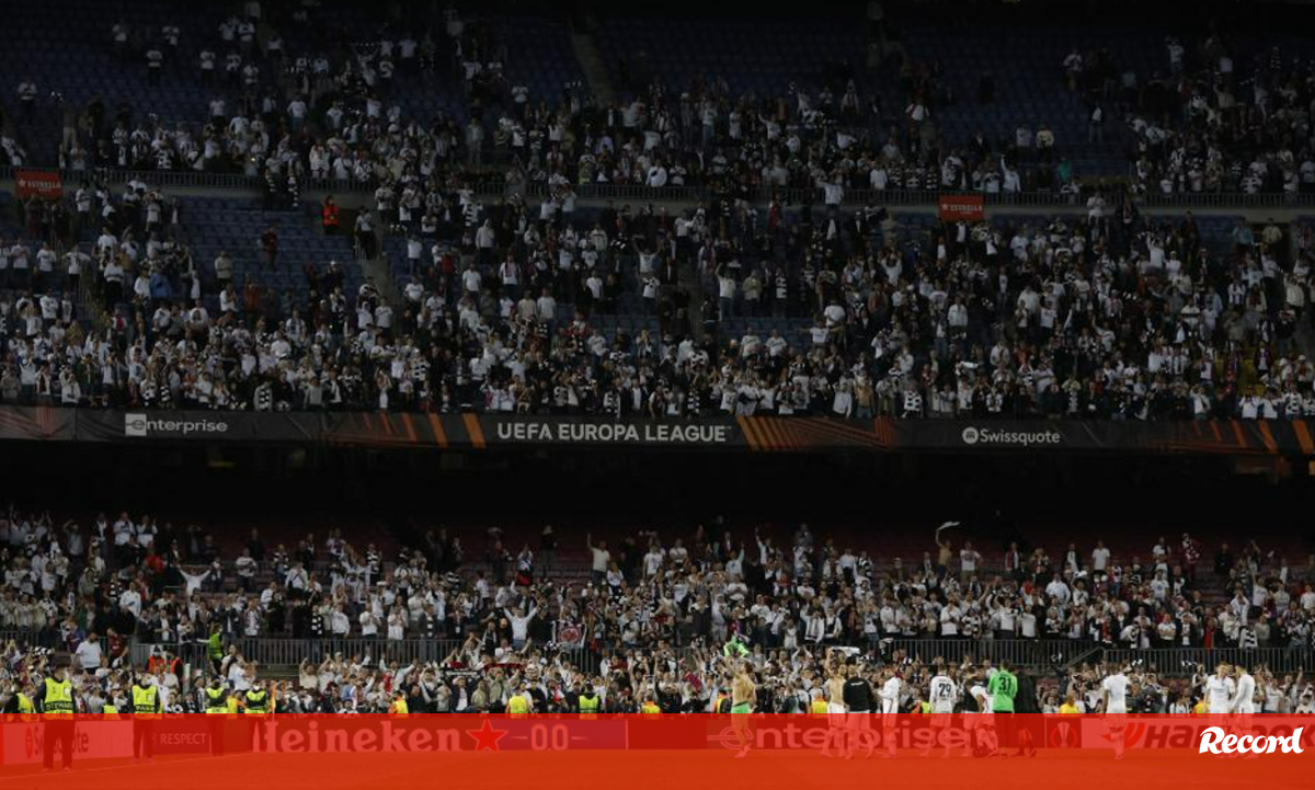 A eliminação nos quartos de final da Liga Europa aos pés do Eintracht Frankfurt, após derrota caseira (2-3) não foi a única má notícia para o Barcelona esta quinta-feira à noite. Além do desaire, uma enchente de adeptos alemães deixou Camp Nou mais branco do que nunca (quase a parecer... o Santiago Bernabéu), com mais de 20 mil simpatizantes germânicos entre os 80 mil espectadores que assistiram à 2.ª mão dos 'quartos'. Isto quando o Barça apenas tinha libertado 5 mil ingressos para o clube visitante...