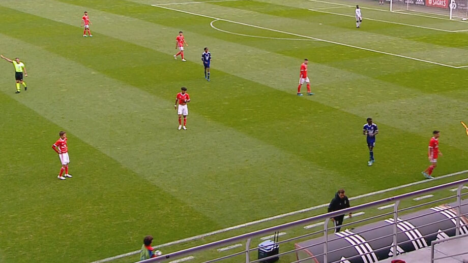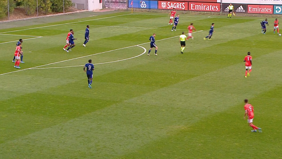 6' - Umaro Embaló coloca milimetricamente a bola em Tiago Gouveia, na meia-lua, mas o jogador do Benfica é logo pressionado pelos defesas franceses, que não lhe dão espaço para rodar e rematar à baliza.