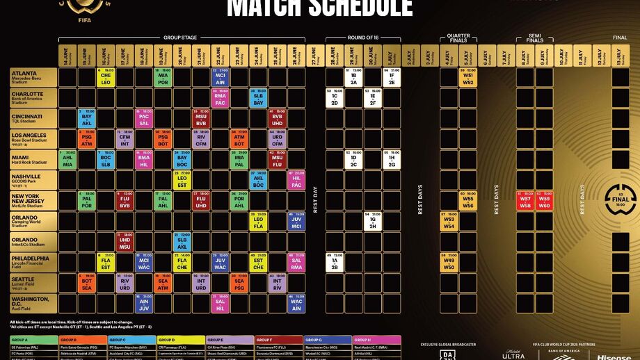 Ao todo, vão ser 63 jogos no Mundial de clubes, em 12 estádios e em 11 cidades, entre 14 de junho e 13 de julho de 2025, com a final a ser disputada no MetLife Stadium, que vai também acolher os dois jogos das meias-finais, em 8 e 9 de julho.