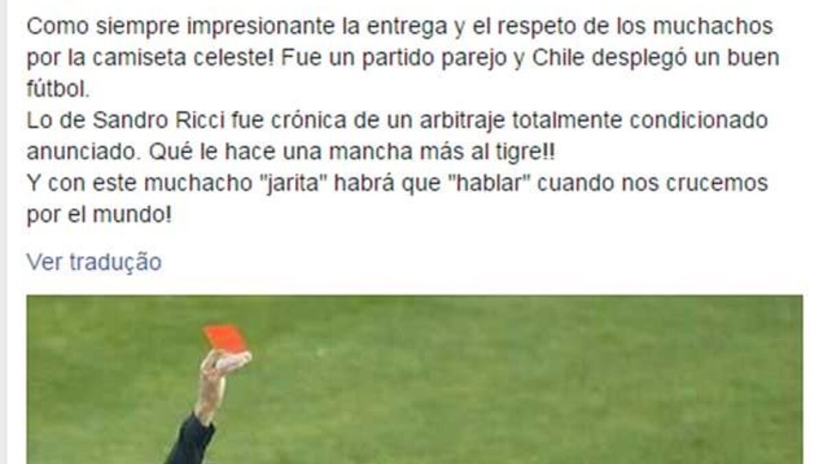 Incidente que levou às palavras do ex-capitão dos celestes ocorreu durante o jogo do Chile com o Uruguai...