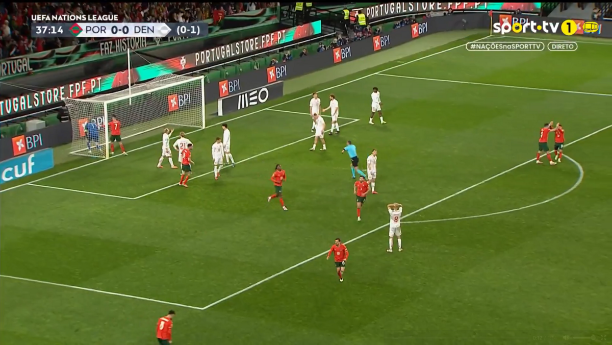Numa primeira parte marcada pelo penálti desperdiçado por Cristiano Ronaldo, Portugal conseguiu mesmo chegar à vantagem diante da Dinamarca aos 39 minutos, mercê de um autogolo de Joachim Andersen.